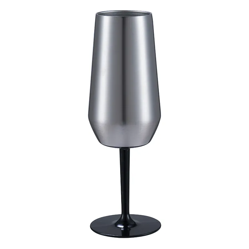 The insulated stainless steel red wine mug with polished metallic body and black stem/base exemplifies advanced engineering, material optimization, and professional aesthetics. Its double-wall insulation ensures consistent temperature retention for wine, cocktails, or hot beverages, while the stem and base provide ergonomic handling and stability.